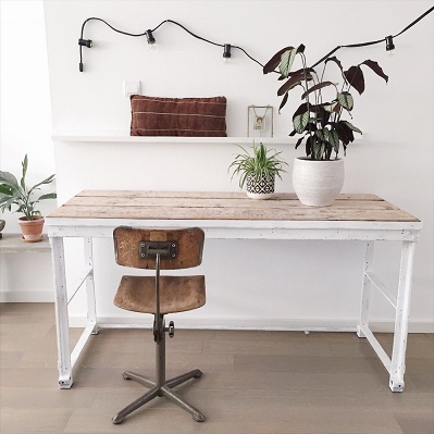 Op mijn spullen met een grote emotionele waarde waar ik mijn eigen creatie van gemaakt heb zoals de oude industriรซle ladekast van mijn vader, het zwarte, industriรซle stellingsrek van mijn mama en de oude planken die ik in de tuin gevonden heb bij mijn ouders. Daar heb ik een bureau van gemaakt. Mijn moeder zou dit geweldig gevonden hebben en als er een hemel is, dan weet ik zeker dat ze staat te klappen.