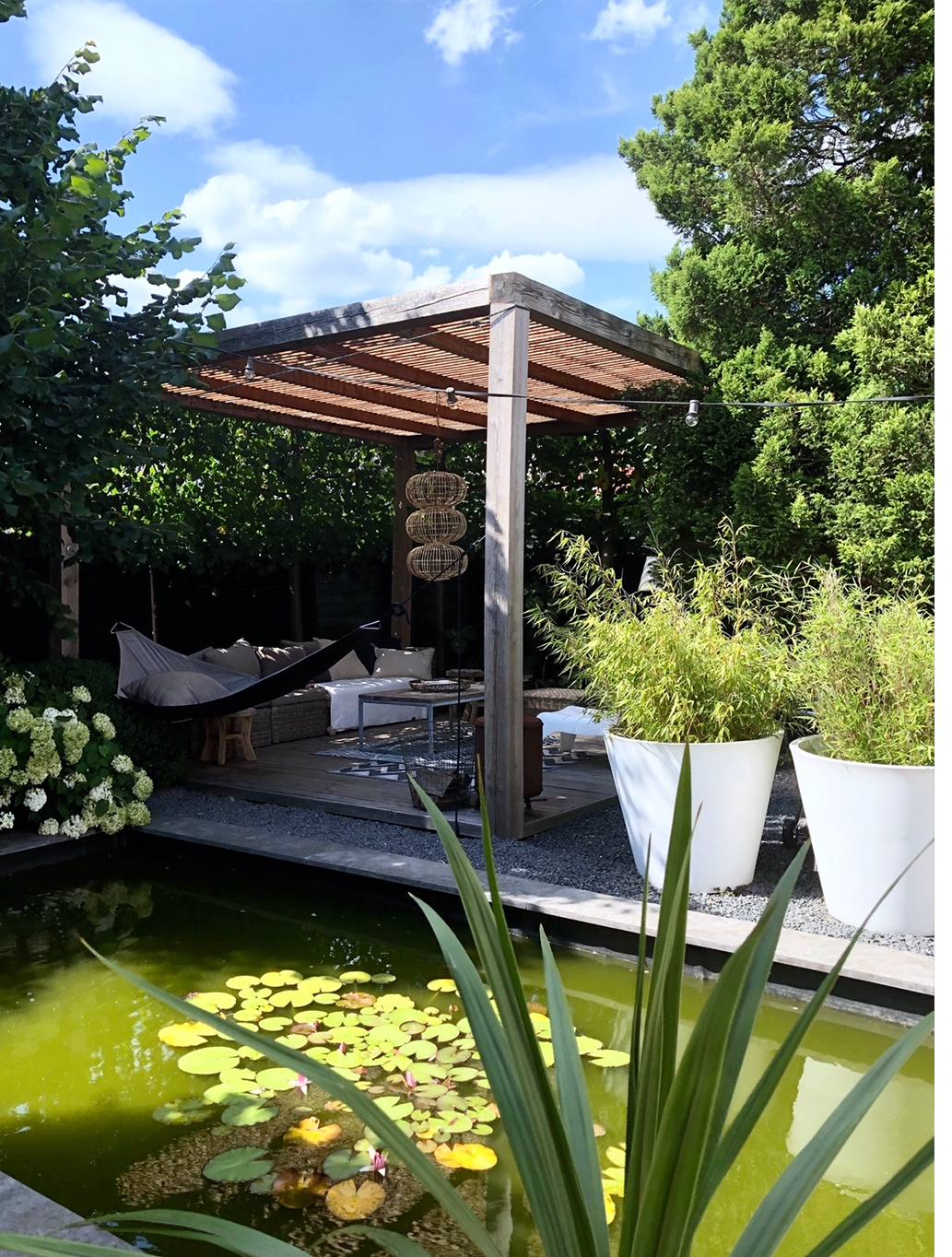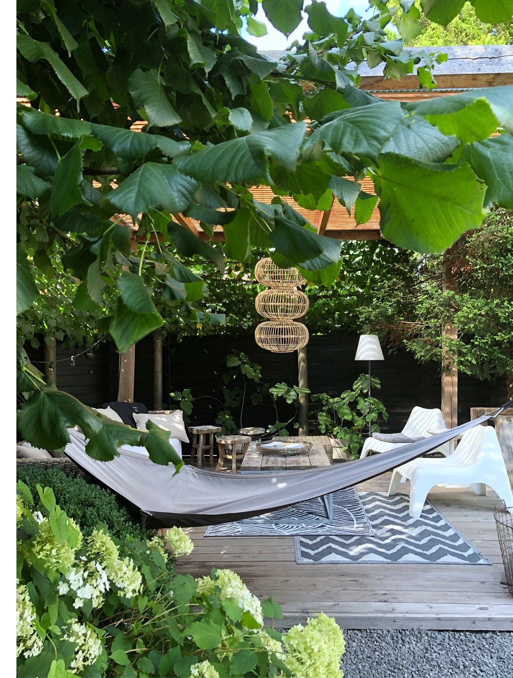Op dit moment ben ik het meest blij met de tuindeuren, die het binnen/buitengevoel versterken en met mijn tuin, ook omdat hij nu bijna af is. Helemaal in Ibizastijl, voor een instant vakantiegevoel. Laat die zon maar weer komen!