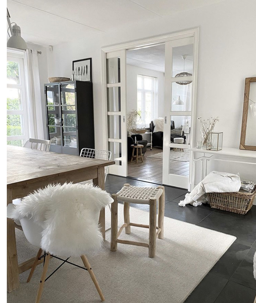 Mijn stijl is een beetje een mix van alles. Ik ben van mening dat je een huis niet in een dag kan inrichten door naar een woonboulevard te gaan en er alles in één middag uit te zoeken. Ik ben in Nederland, maar ook op vakanties in het buitenland, altijd aan het zoeken naar items voor het huis. Woonbladen, Kringloopwinkels, markten, online shops… niets is veilig. Zo heb ik door de jaren heen een eigen stijltje ontwikkeld. Door Instagram kom ik er ook steeds meer achter wat mijn eigen smaak is. Daarbij staat de kleur wit centraal. Altijd met een vleugje zwart voor het stoere effect en hout/rotan/riet ter aanvulling voor een warme sfeer.
