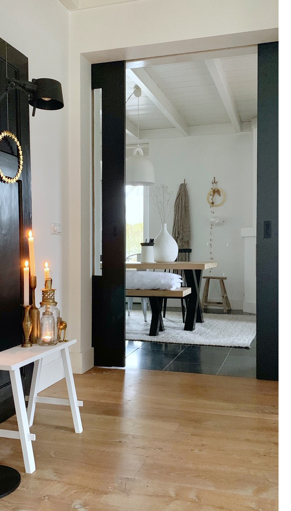 Als ik ons huis opnieuw zou mogen inrichten, zou ik wat betreft stijl niet veel veranderen. Ik ben heel tevreden met het lichte interieur met de stoere en zachte invloeden van zwart en hout. Binnenkort wil ik graag al onze raamkozijnen op de benedenverdieping zwart verven. Het zal heel anders staan, maar ik weet zeker dat het heel gaaf gaat worden. Nu nog even de tijd vinden!