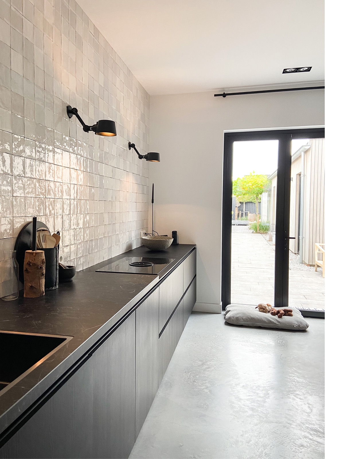 Het meest blij zijn we met de woonkeuken, met recht een woonkeuken. Het is de grootste ruimte in ons huis maar we zitten er altijd en voelt gewoon zo fijn. Ik wilde in het begin een kookeiland maar Annemarie (mijn collega-partner) vond dat een wandopstelling met daardoor ruimte voor een mega grote tafel veel beter bij ons passen. En ze had zo gelijk. Dit is wie we zijn, dit past veel meer bij ons.