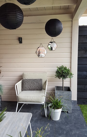 De kleurstelling past ook perfect! Normaal gesproken kiezen we meteen voor zwart, maar in de tuin doen we het anders, tenminste in de veranda. Daar gaan we voor licht!
