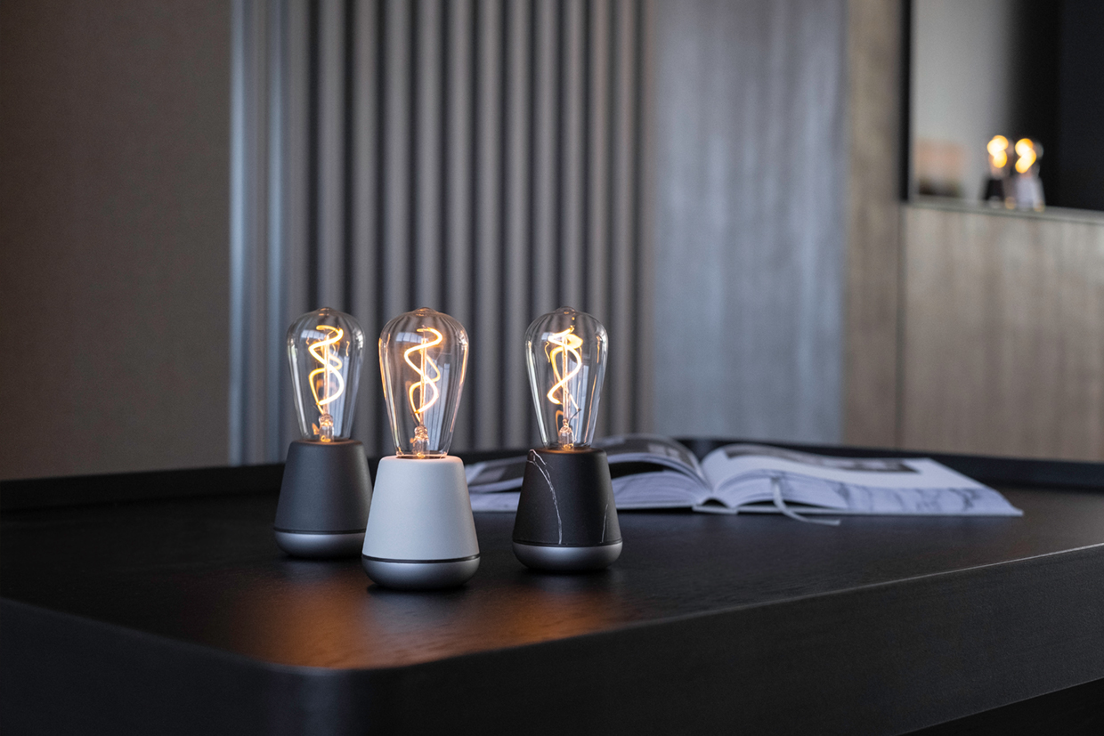 De Humble ONE, een oplaadbare, draadloze tafellamp van Humble Lights is een eerbetoon aan de traditionele gloeilamp. Sfeer creëren in je interieur zonder gedoe met snoeren. Gebruik de Humble ONE om een donker hoekje te verlichten, als sfeerlichtje op tafel, als nachtlampje, of neem ‘m bijvoorbeeld mee naar buiten tijdens een heerlijke zomeravond.
