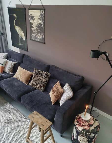 Vorige week heb ik jullie in deze blogpost verteld over onze nieuwe loungebank. Aangezien de bank velours is en onze huidige muur was geverfd in de kleur Black Smoke met Marrakech Walls van Pure & Original, moest ik iets anders verzinnen.