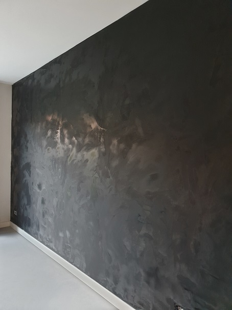 Wow! Onwijs gaaf! Bij ons thuis hebben we een lange wand driekwart zwart geschilderd. Omdat er structuurverf op zit durfde ik geen betonlook verf te gebruiken. Wat we waren vergeten: kleine kindjes in huis, dus overal vlekjes en vegen te zien. Nu twijfel ik: terug wit of toch voor een donkerdere en afwasbare kleur zwart. Jullie muur is zo gaaf, maar daar moet je zeker gestucte muren voor hebben?